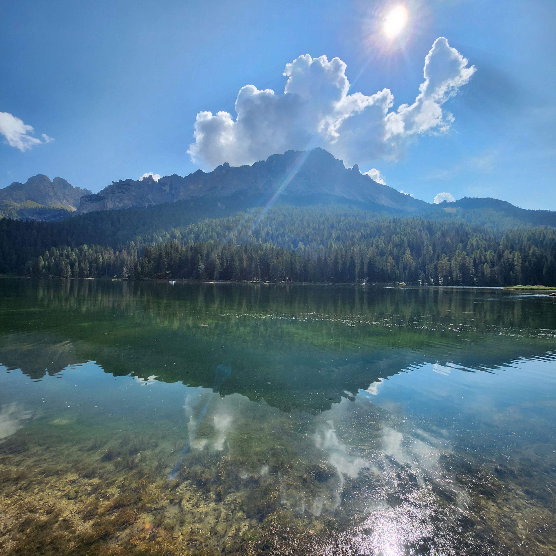 Ein schöner Fotostop auf der kurvenreichen Dolomitenrundfahrt. Einmal tief durchatmen und wenn auch nur in Gedanken diesen wunderschönen Gebirgssee durchschwimmen!